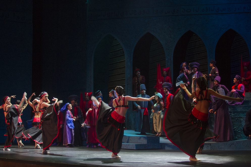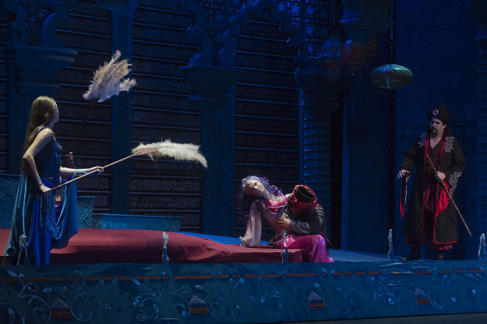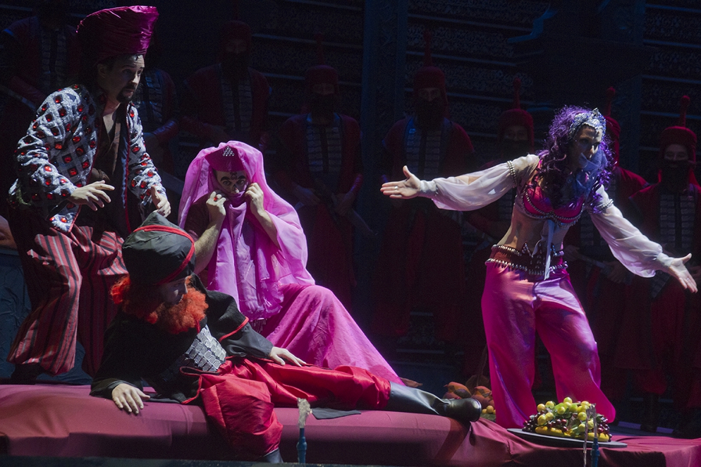The action takes place in a market in Damascus and the plot goes around Zobeida, a virtuous woman sought after three powerful men, who will incur to tricks and improper proposals in order to gain her grace. By the advice of a Dervisch, Zobeida makes appointments with the three of them at her friend Fahíma’s house. When the three arrive, the pirate Ka-Fur and his henchman show up. Fearing for their lives, the three men offer to ally with him. The supposed outlaw turns out to be the Caliph in disguise – who also posed earlier as the Dervisch advising to invite the men. He accuses the men from being disloyal, strip them from their belongings, and grants them to Zobeida.