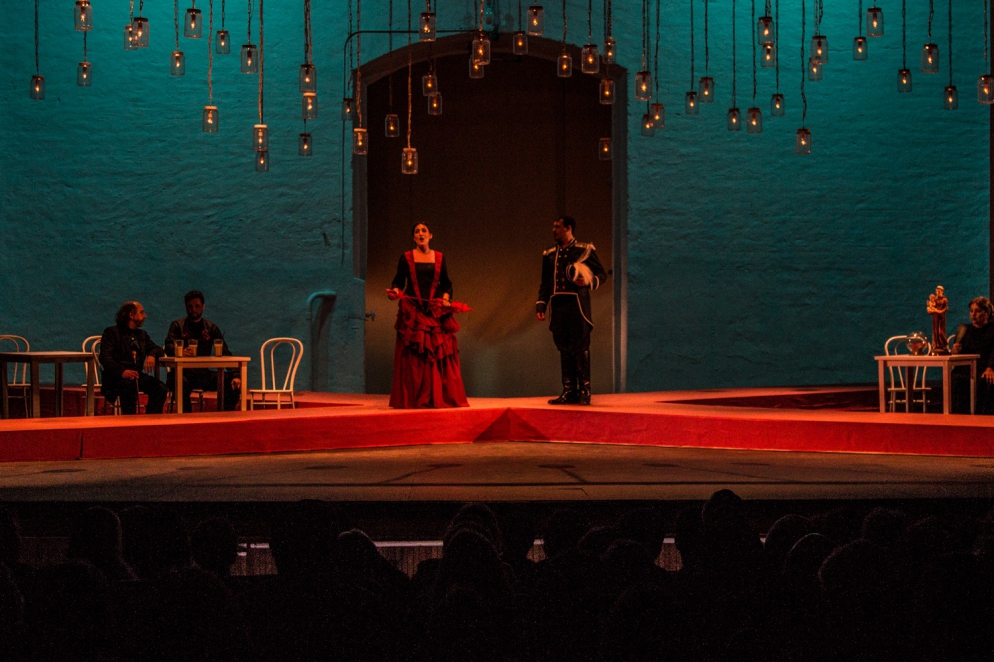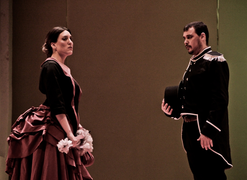 Luisa Fernanda is a young tenant in Mariana’s guesthouse, where she lives with her father, Don Florito. Luisa Fernanda is in love with Javier Moreno, a young soldier who once was servant in the same guesthouse and who she considers her boyfriend, but who actually visits her less and less, especially since he has been promoted to Colonel. Mariana, who loves Luisa Fernanda as her own daughter, would like to see her pay more attention to Vidal Hernando, a rich extremaduran landed that courts her, but Luisa Fernanda is faithful to her heart. Javier arrives to visit Luisa Fernanda, but cannot find her. Instead, he finds Anibal, who is now working on the guesthouse in the same position he once had. Aníbal introduces him to Luis Nogales, a liberal ideologue of the revolution and another tenant in Mariana’s guesthouse. Nogales and Anibal approach Javier under the disturbing surveillance of the Duchess Carolina, who lives across the street from the guesthouse and is openly monarchist. Vidal learns from Aníbal that Javier might join the liberal party and declares himself monarchist, just to stand across the ideological street from his romantic rival. The Duchess addresses Javier then, and with her shameless charms brings him back to the monarchist party to Anibal’s astonishment, Nogales rage and specially, Luisa Fernanda’s disappointment. At that point, also Vidal decides to switch parties. During the San Antonio Dance, Javier and Carolina stroll brazenly. On Luisa Fernanda and Don Florito’s arrival, Mariana does not lose a minute to update the young girl. The Duchess now addresses Vidal unsuccessfully. Relentless, the Duchess decides to auction one of her dances “to gather more money for San Antonio’s”. The situation unleashes a small bidding war between Javier and Vidal, which Vidal wins. However, when it is time to dance Vidal gives away his price to Javier. The Colonel then replies challenging Vidal. Vidal leaves with Luisa Fernanda, but he promises to accept the challenge at some other time. The revolution bursts and even with the brave Vidal leading the liberal hosts, they are defeated. Javier intends to hold Vidal but Luis Nogales declares himself the leader of the insurgents and is arrest instead. Luisa Fernanda, who has saved Javier’s life during the riot, accepts Vidal’s proposal after seeing the soldier with the Duchess once again. Luisa Fernanda, Mariana, don Florito and Anibal move to Extremadura after a new revolution goes off. They all take shelter in Vidal’s farm. The Queen is depose and the Duchess has to flee to Portugal. Javier is lost in action during the Alcolea’s battle, but he reappears in Extremadura looking for Luisa Fernanda’s forgiveness. She insists on keeping her word to Vidal, but he rejects her when he realizes she is still in love with Javier.