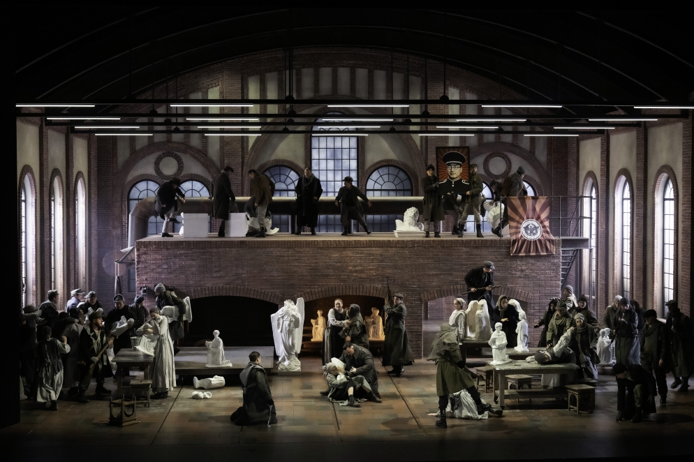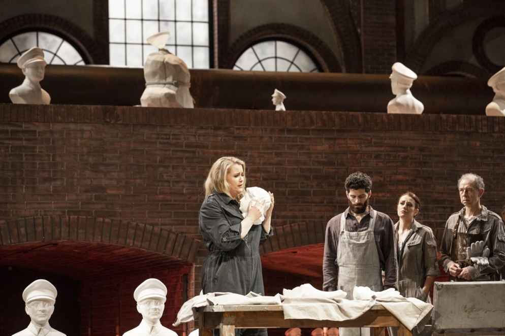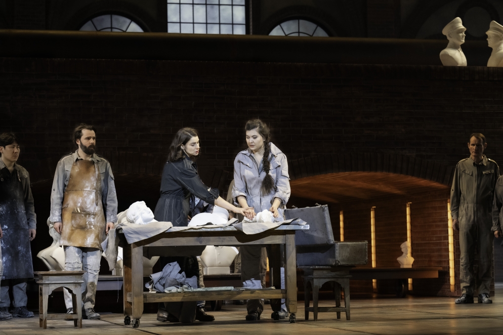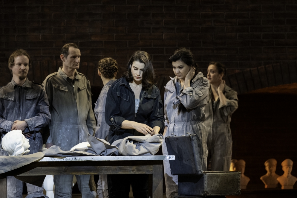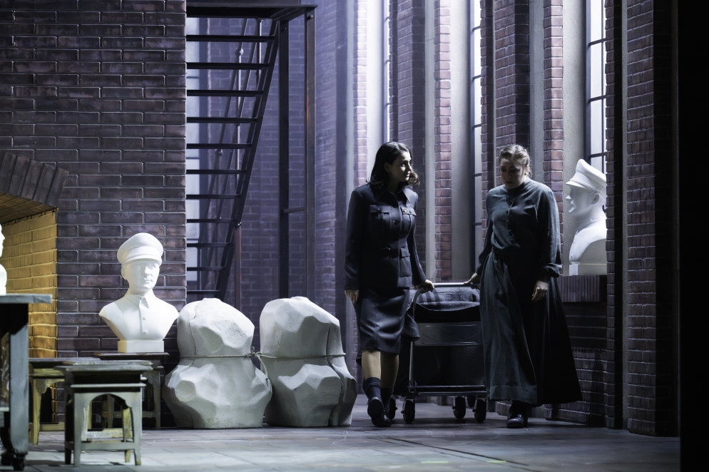 Le conflit insupportable entre l'amour et la soif de vengeance, entre la religion et la raison et entre sa propre tradition et un empire pousse presque Norma à assassiner ses propres enfants - avant de décider de franchir une autre étape, à peine moins radicale. Avec le rôle de Norma, Bellini a créé une figure féminine qui traverse en peu de temps toutes les conditions humaines imaginables et les exprime à l'aide de moyens musicaux allant du bel canto au cri. Vasily Barkhatov interprète la tragédie dans le contexte d'un changement de système politique. Norma se retrouve prise entre les boulets d'un bouleversement idéologique dans lequel les vieilles idoles sont remplacées par de nouvelles idoles.