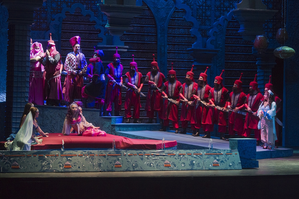 The action takes place in a market in Damascus and the plot goes around Zobeida, a virtuous woman sought after three powerful men, who will incur to tricks and improper proposals in order to gain her grace. By the advice of a Dervisch, Zobeida makes appointments with the three of them at her friend Fahíma’s house. When the three arrive, the pirate Ka-Fur and his henchman show up. Fearing for their lives, the three men offer to ally with him. The supposed outlaw turns out to be the Caliph in disguise – who also posed earlier as the Dervisch advising to invite the men. He accuses the men from being disloyal, strip them from their belongings, and grants them to Zobeida.