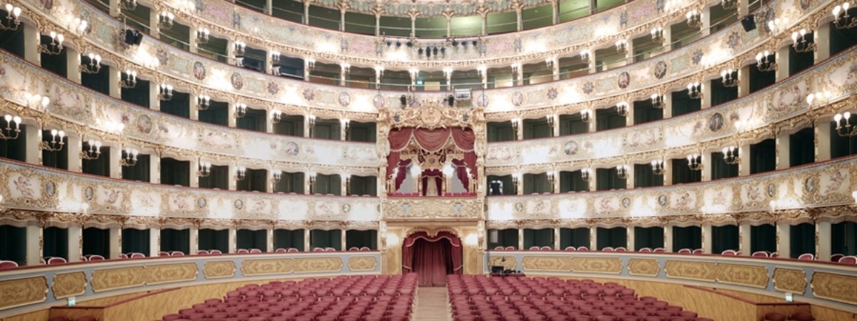 In December 1836, disaster struck again when the theatre was destroyed by fire. However, it was quickly rebuilt with a design provided by the architect-engineer team of the brothers, Tommaso and Giovanni Battista Meduna. The interior displays a late-Empire luxury of gilt decorations, plushy extravagance and stucco. La Fenice once again rose from its ashes to open its doors on the evening of 26 December 1837.