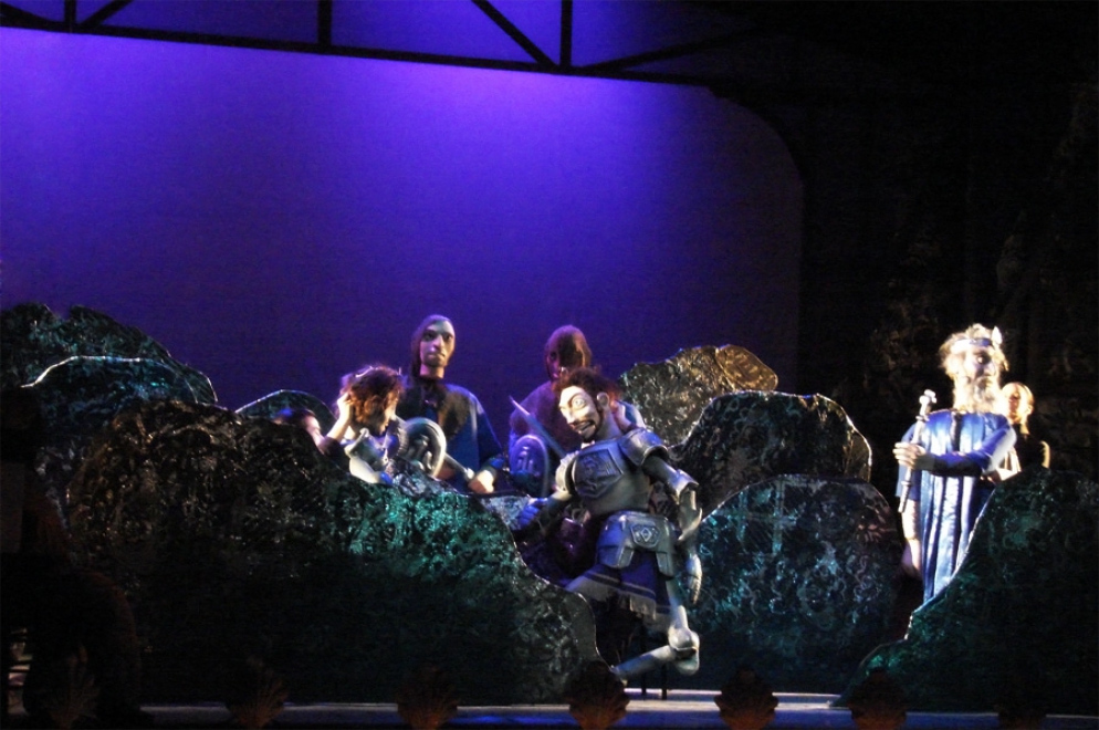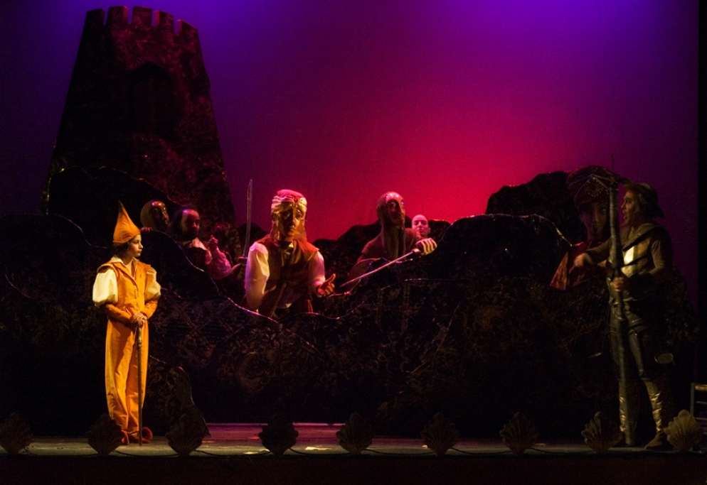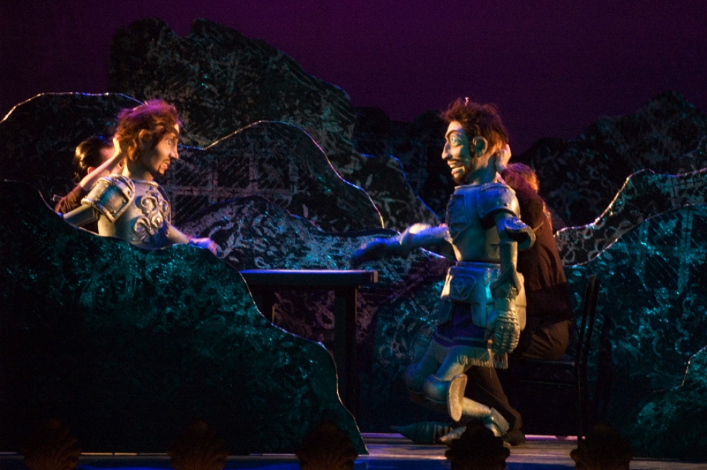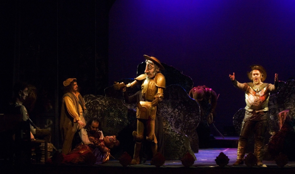 El Quijote va a ver una representación de títeres del Maese Pedro. En ella, se cuenta la historia de Melisendra, la esposa de Don Gaiferos, a quien secuestra y mantiene cautiva el rey Moro Marsilio. Gaiferos debe rescatarla del palacio del Moro, con la subsecuente persecución. Llegado ese punto, don Quijote confunde la fantasía con la realidad y destruye el teatro y los muñecos con el fin de salvar a los fugitivos.