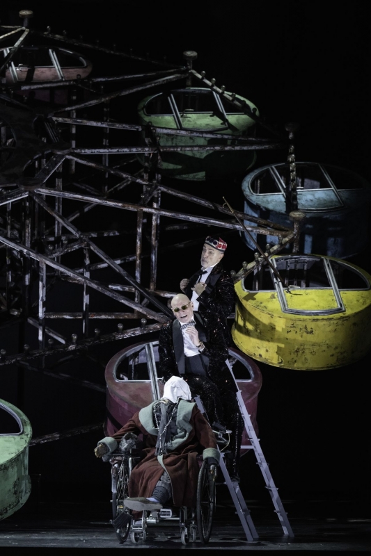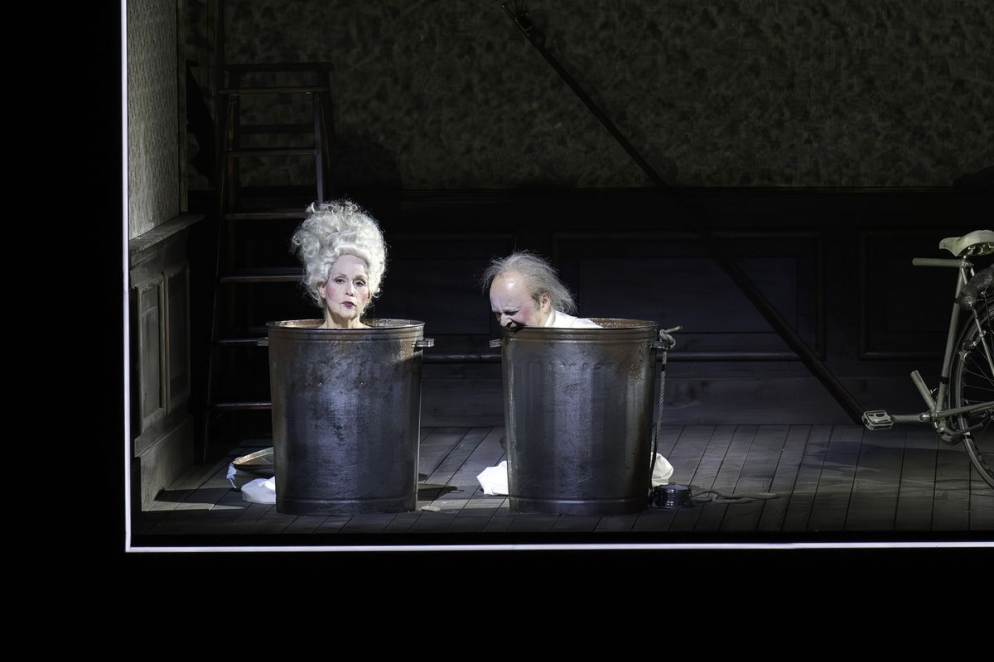 Pendant plus d'un demi-siècle, le compositeur hongrois a été fasciné par Endgame de Beckett, dont la première a eu lieu à Paris en 1957. En 2010, à l'âge de 85 ans, Kurtág a commencé à composer son tout premier opéra, dont la première a eu lieu à la Scala de Milan en 2018. Dans son langage musical, il s'appuie étroitement sur le texte original français de Beckett, qu'il ouvre à un espace sonore fascinant grâce à son instrumentation délicate. Ici, les prédilections de Beckett pour le cirque, les parcs d'attractions et la clownerie résonnent, comme le souligne Johannes Erath dans sa mise en scène.